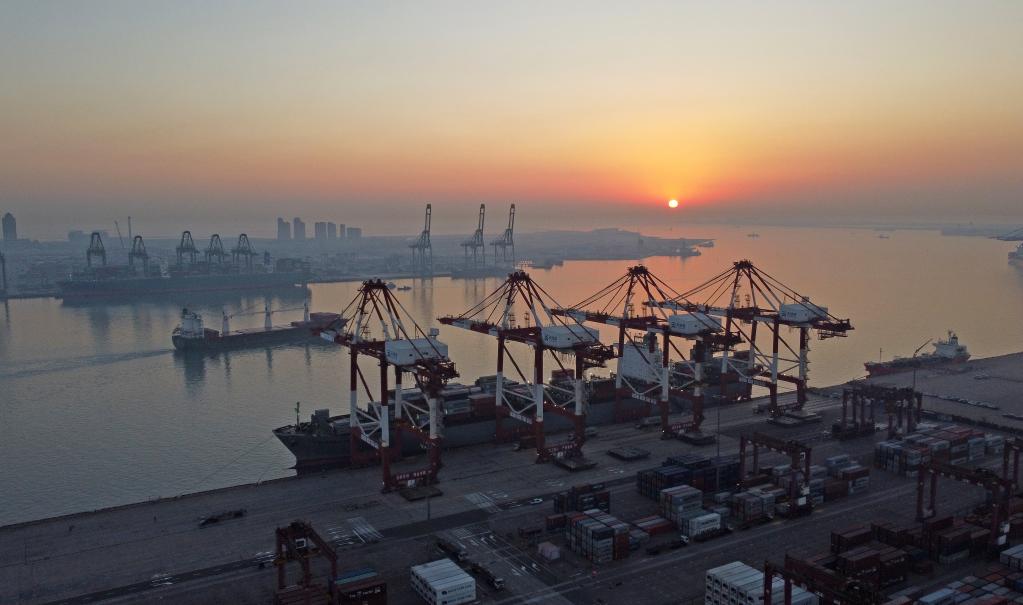 這是1月1日在天津港拍攝的日出。