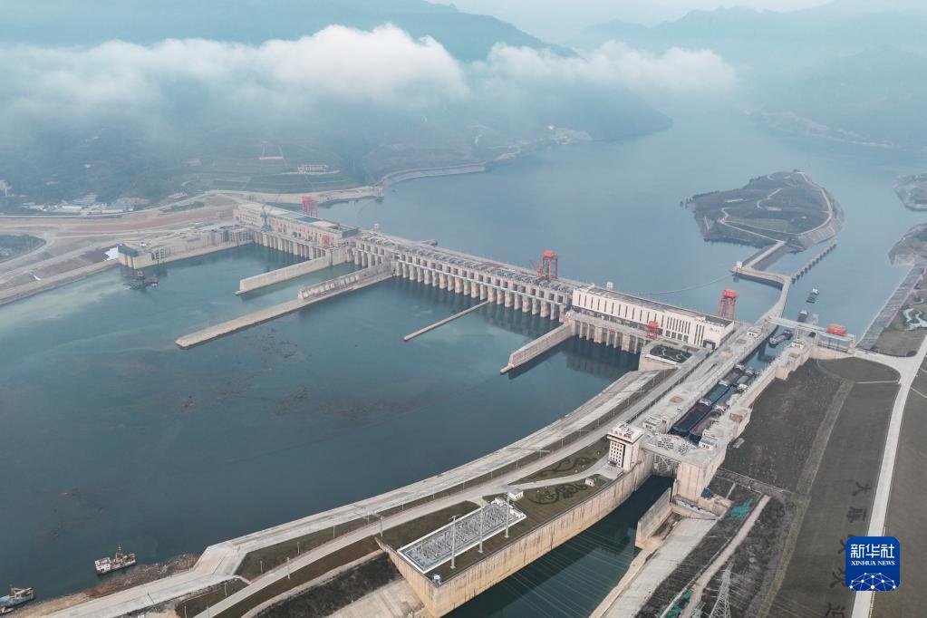 這是1月1日拍攝的建設中的廣西大藤峽水利樞紐工程(無(wú)人機照片)。