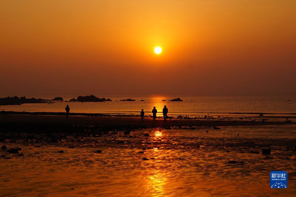 1月1日,市民在山東省青島西海岸新區的海邊觀(guān)看日出。