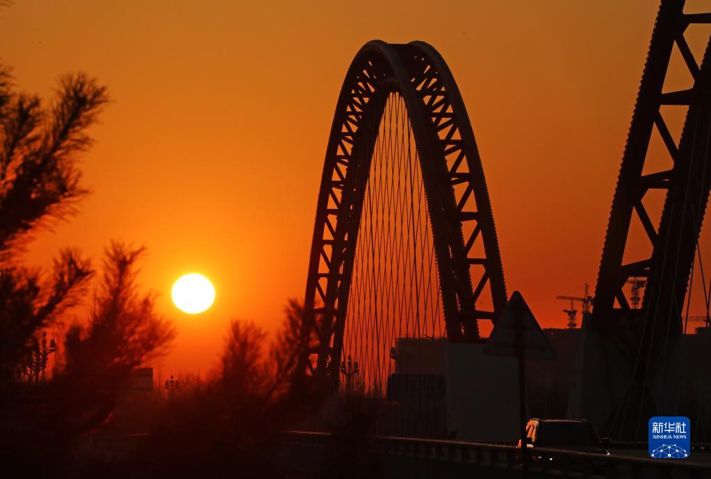 1月1日在河北張家口經(jīng)濟開(kāi)發(fā)區明湖公園拍攝的日出。