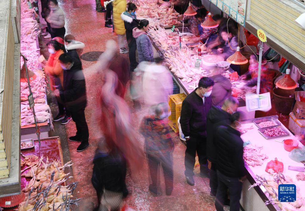 1月1日,人們在湖南省永州市道縣農貿市場(chǎng)選購商品。