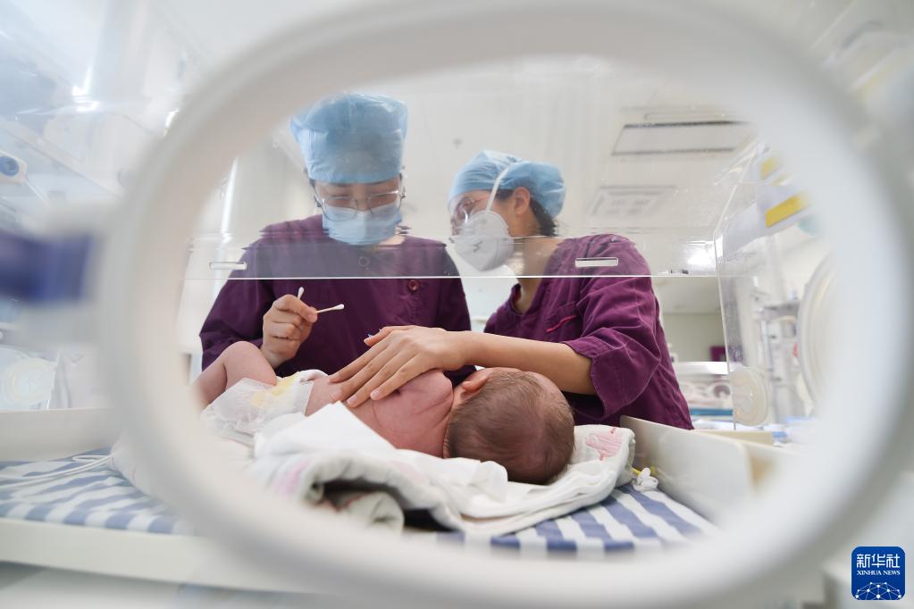 1月1日,在江蘇南京市江寧醫院,醫護人員在護理新生兒。