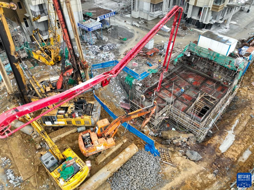 1月1日,工人在貴州省遵義市一處建筑工地工作(無(wú)人機照片)。