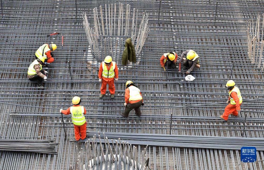 1月1日,工人在石家莊市復興大街滹沱河特大橋建設工地施工。