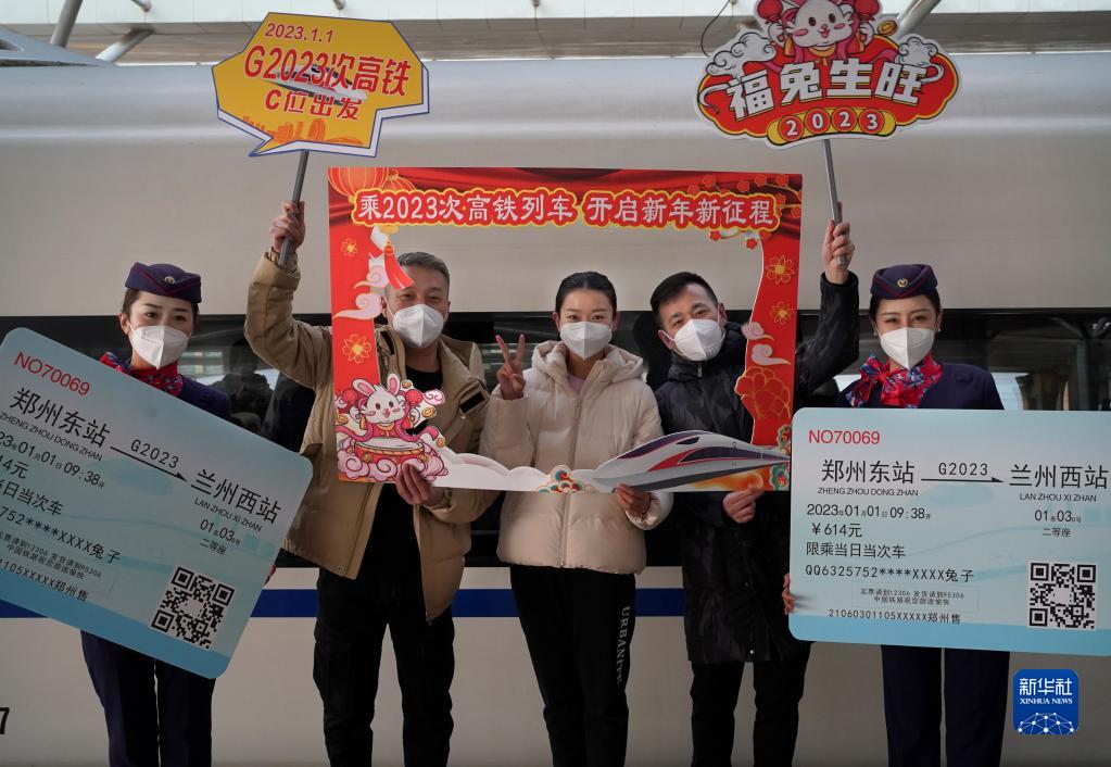 當日,500多名旅客登上G2023次高鐵列車(chē),開(kāi)啟嶄新的一年。G2023次列車(chē)由中國鐵路鄭州局集團有限公司鄭州客運段擔當值乘,列車(chē)從商丘始發(fā),途經(jīng)鄭州東站等站,最終到達蘭州西站,因恰巧與2023新年數字吻合,這趟列車(chē)也被旅客親切稱(chēng)為“新年高鐵”。