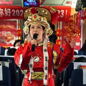 在2023年元旦到來(lái)之際,列車(chē)工作人員將車(chē)廂布置一新,舉行了“你好2023,相約2023”賀新年活動(dòng),為旅客獻上歡快的演出,送上新年的祝福。