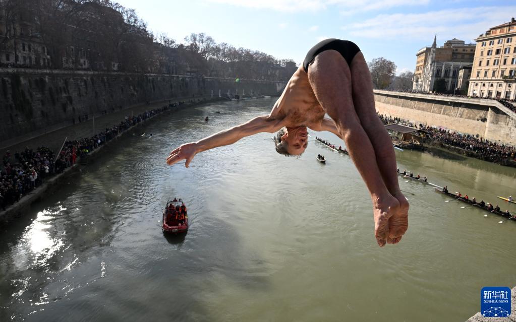 2023年1月1日,一名男子從意大利羅馬的加富爾橋躍入臺伯河中。