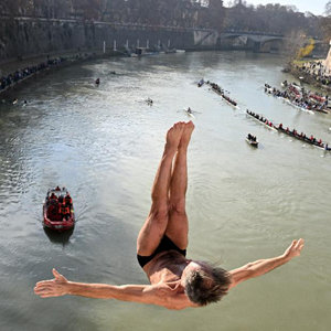 2023年1月1日,一名男子從意大利羅馬的加富爾橋躍入臺伯河中。