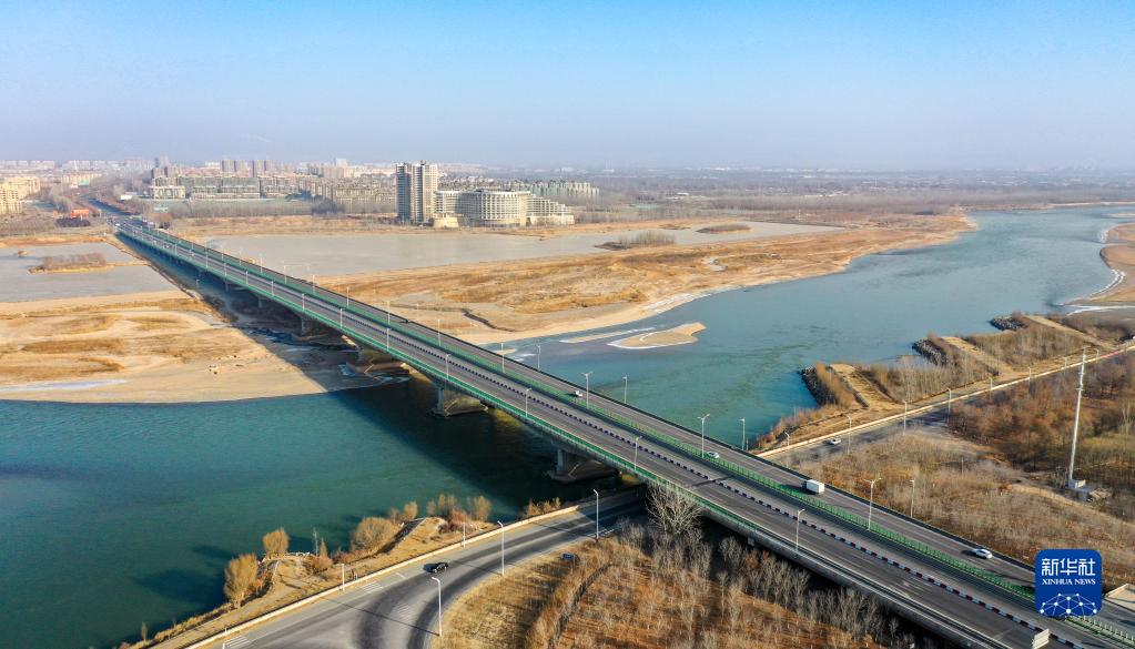這是2022年12月29日拍攝的位于寧夏中衛市境內的黃河景觀(guān)(無(wú)人機照片)。