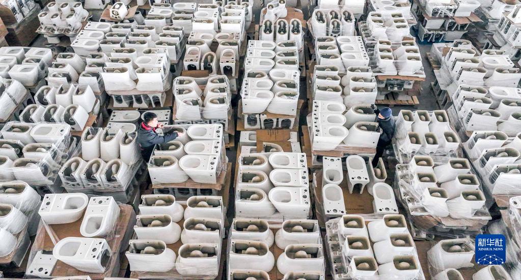 1月3日,工人在河北唐山海港經(jīng)濟開(kāi)發(fā)區一家衛浴企業(yè)的倉庫清點(diǎn)產(chǎn)品。