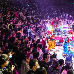 2022年12月31日,不少游客在廣州長(cháng)隆旅游度假區大馬戲劇場(chǎng)迎接新年。