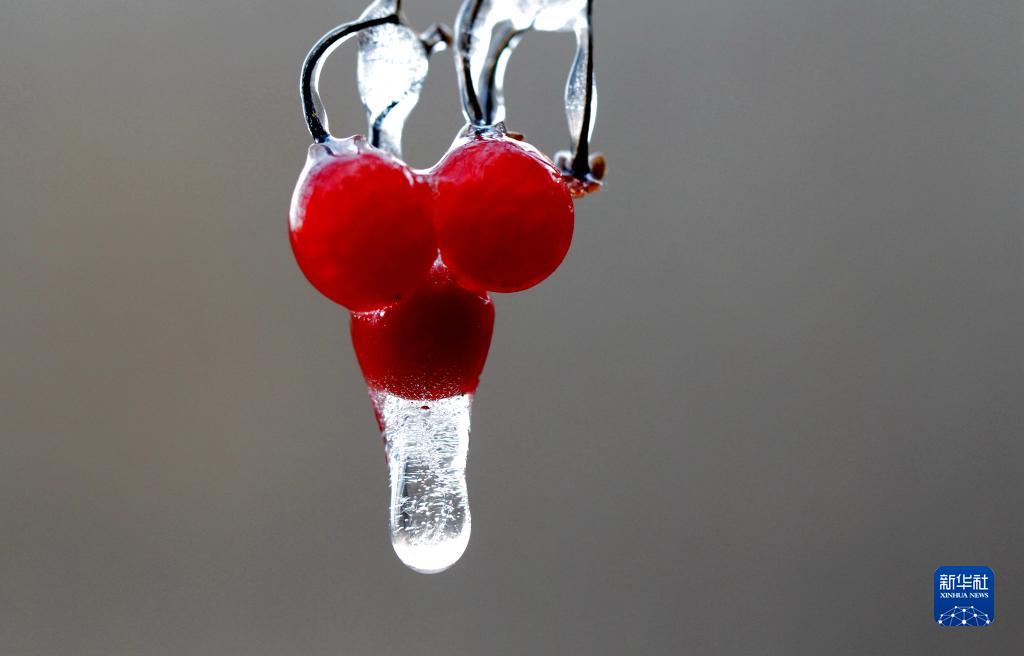 1月1日,在山東省鄒平市南洞村,野生的小紅果上掛著(zhù)冰。