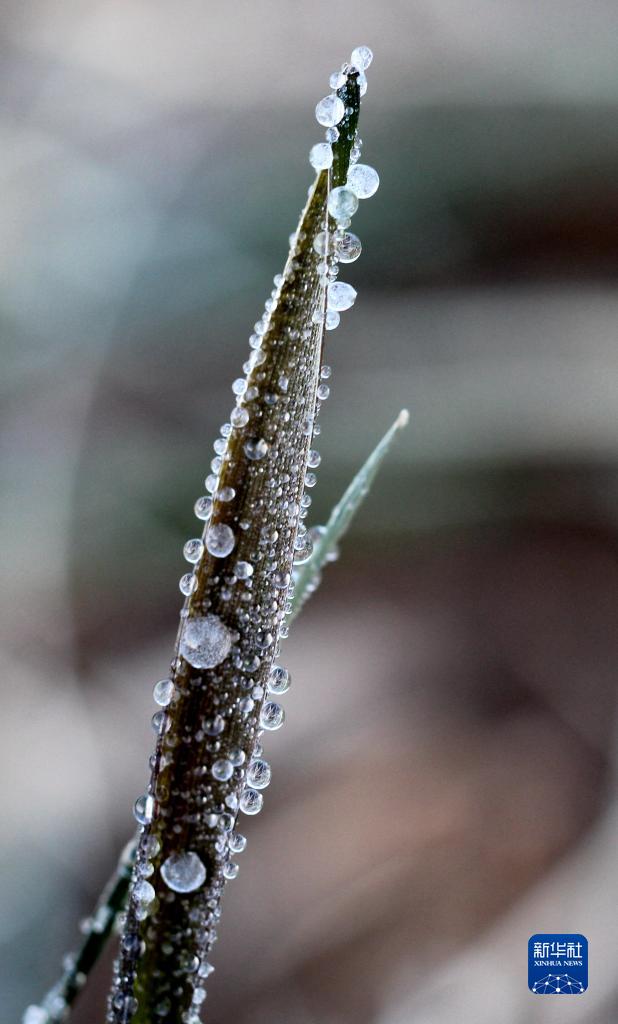 1月2日,在山東省鄒平市西董街道一塊麥田里,麥苗上掛滿(mǎn)小冰粒。
