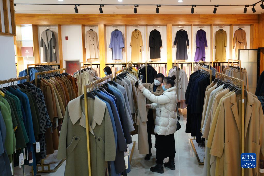 1月4日,顧客在河北省清河縣一家羊絨制品店選購羊絨服裝。