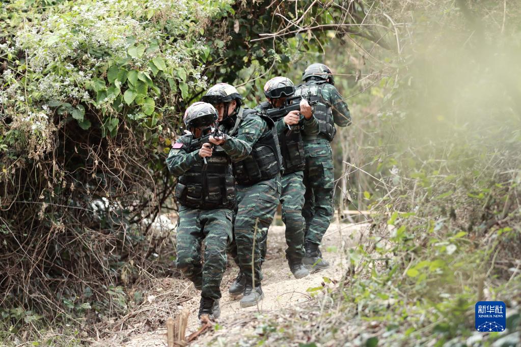 1月3日,武警海南總隊三亞支隊組織特戰隊員在熱帶叢林開(kāi)展捕殲戰斗演練。