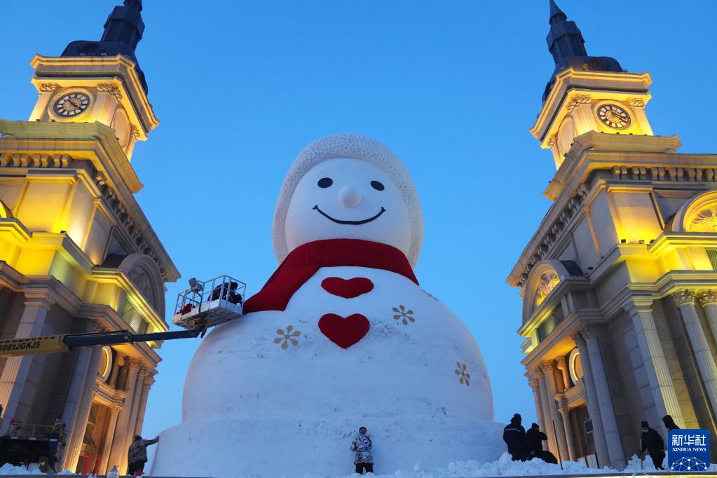 哈爾濱“超治愈”大雪人“回歸”松花江畔