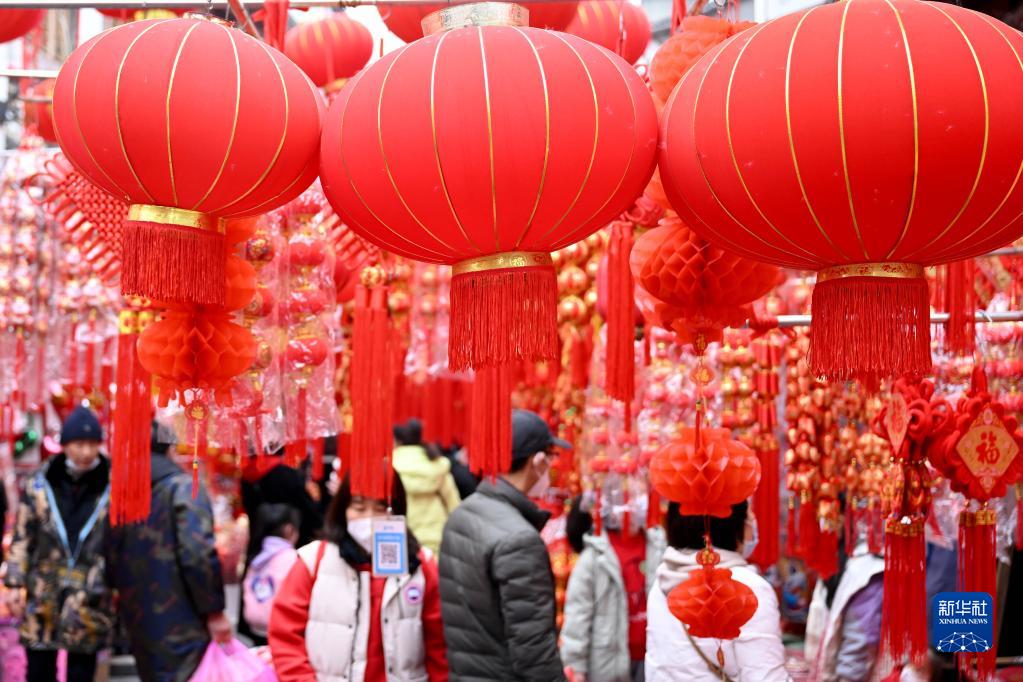 春節臨近,年味漸濃,不少合肥市民來(lái)到城隍廟市場(chǎng)選購春聯(lián)、燈籠等新春飾品,迎接新春佳節的到來(lái)。