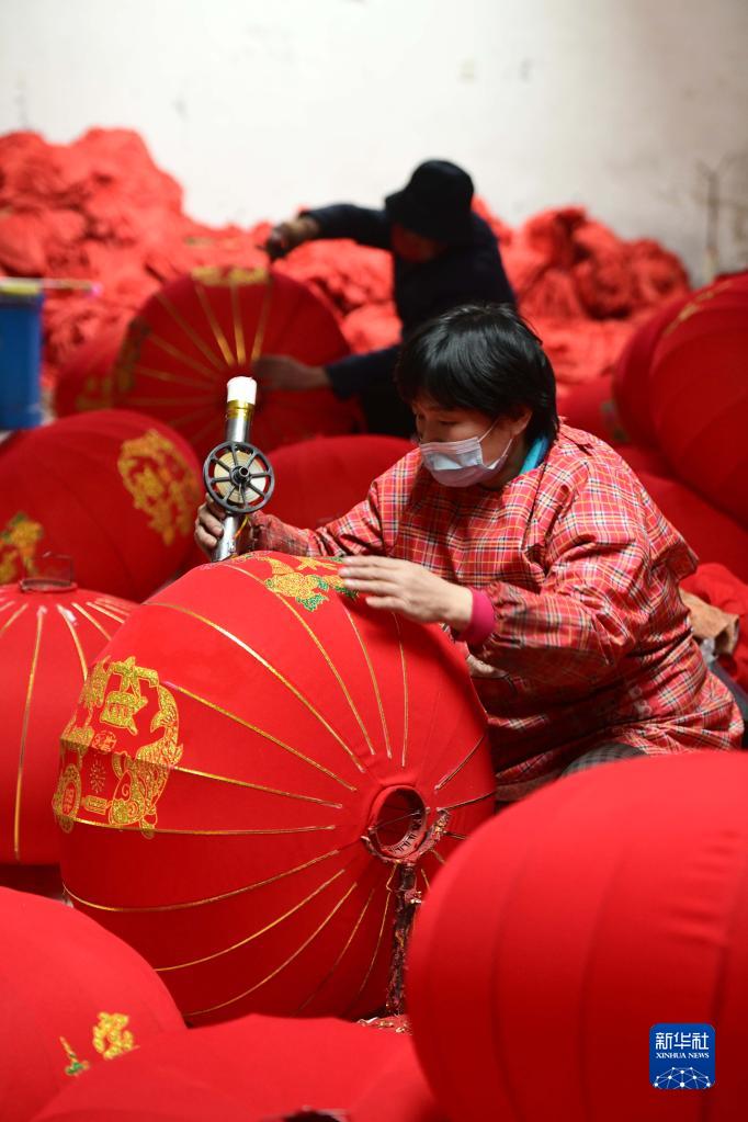 1月5日,在河北省石家莊市藁城區屯頭村,一家宮燈企業(yè)的工人制作宮燈。