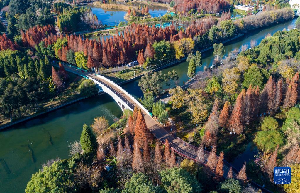 近期,云南省昆明市海洪濕地公園的水杉迎來(lái)觀(guān)賞季,吸引不少游客前來(lái)游覽。昆明海洪濕地公園位于滇池北岸、盤(pán)龍江入湖口西側,是滇池的一道湖濱生態(tài)屏障。