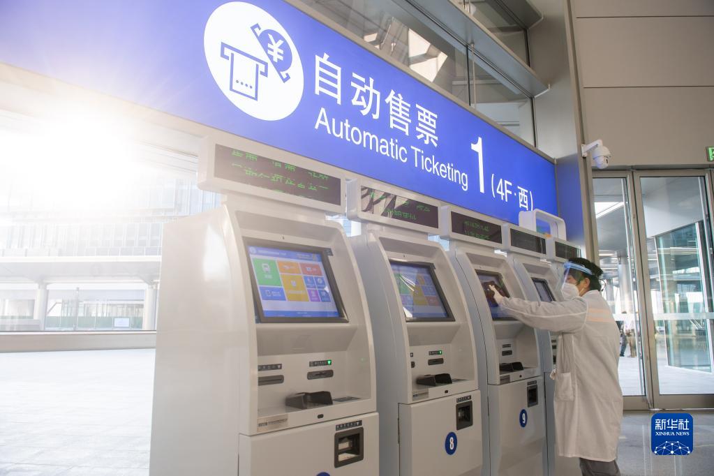 1月6日,杭州西站工作人員對車(chē)站自動(dòng)售票區進(jìn)行消毒作業(yè)。