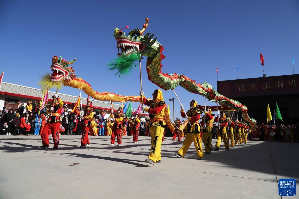 新春佳節臨近,甘肅省定西市的一些社火隊組織排練舞龍、舞獅、劃旱船等傳統社火節目,迎接新春佳節的到來(lái)。