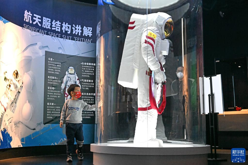 1月7日,一名兒童在國家海洋博物館參觀(guān)“探索·星辰大海──航天科技主題成果巡回展”。