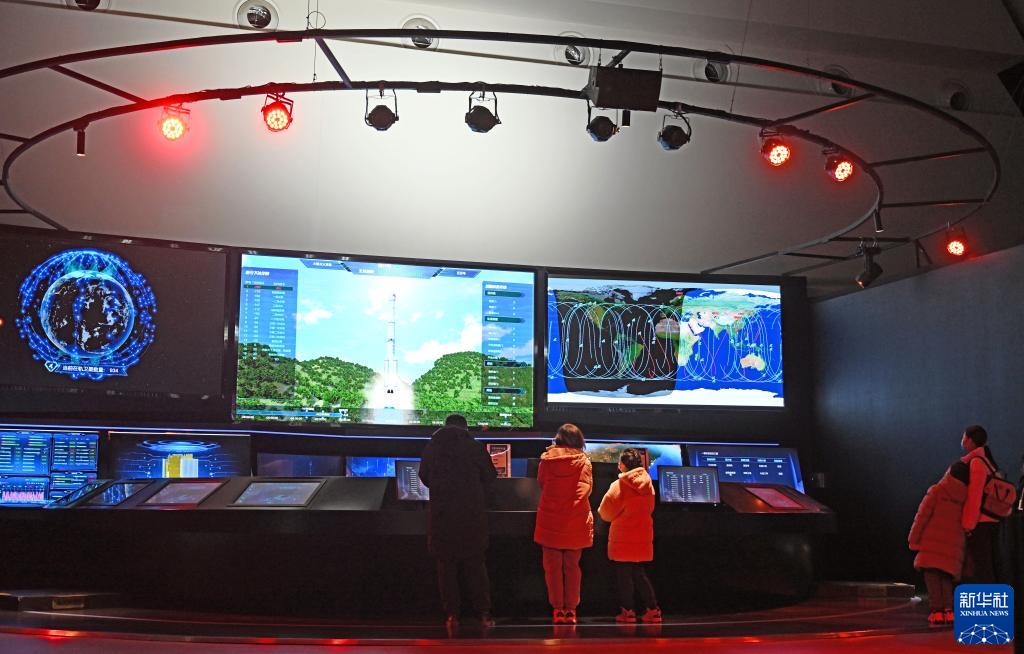 1月7日,觀(guān)眾在國家海洋博物館參觀(guān)“探索·星辰大海──航天科技主題成果巡回展”時(shí)了解模擬火箭發(fā)射。