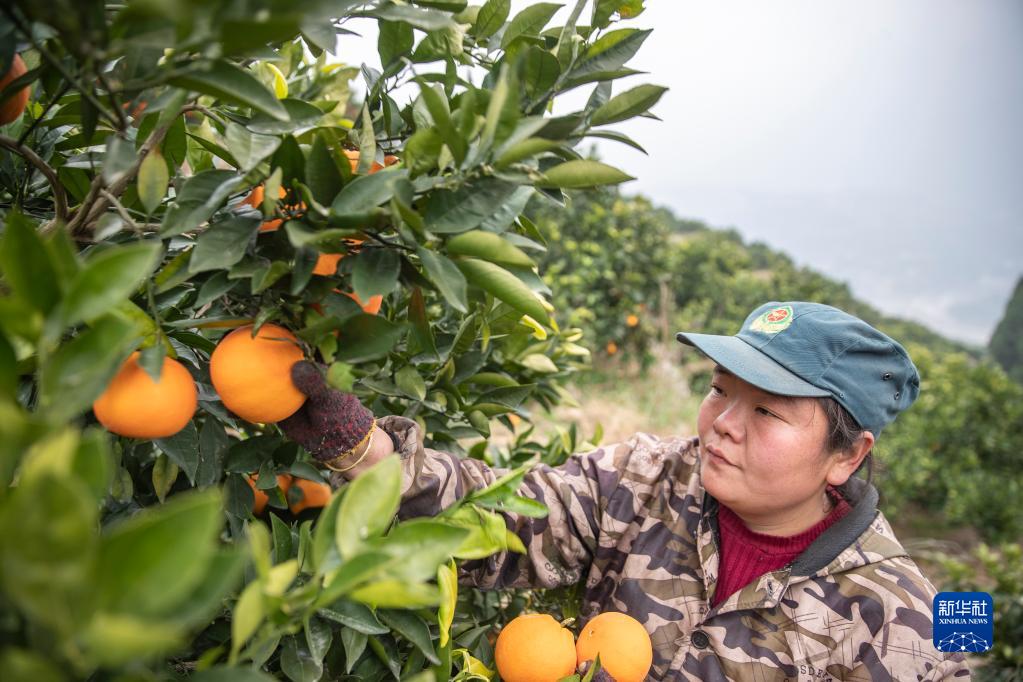 1月6日,在重慶市奉節縣白帝鎮八陣村,村民在采摘臍橙。