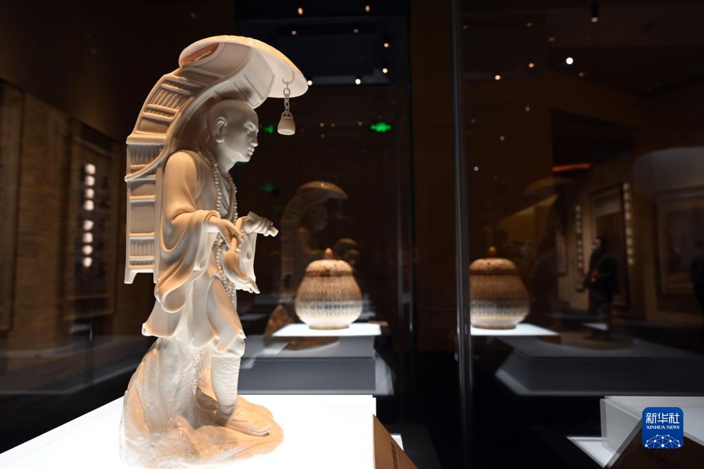 這是展出的德化白釉玄奘立像(1月8日攝)。