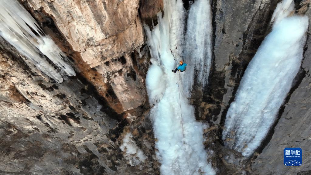 近日,河北邢臺市云夢(mèng)山景區內的七疊瀑形成壯觀(guān)冰壁,吸引不少游客前來(lái)游玩。攀冰愛(ài)好者借助專(zhuān)業(yè)工具,在專(zhuān)職教練的指導下體驗攀冰,成為太行山冬日里一道別樣風(fēng)景。