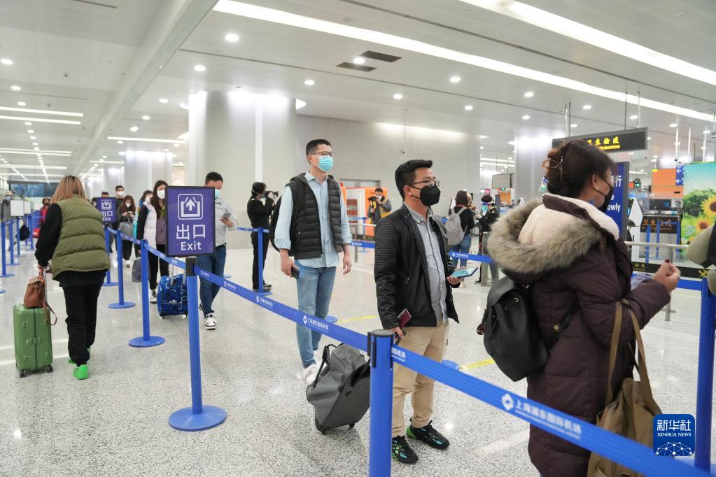 1月8日,在上海浦東國際機場(chǎng),旅客排隊等待辦理入境手續。