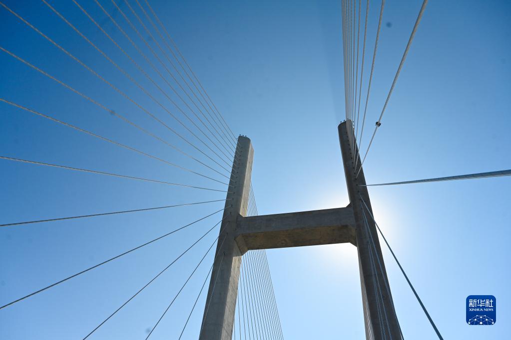 1月8日,橋梁纜索智能檢測機器人對福建平潭公鐵兩用跨海大橋的斜拉索進(jìn)行檢測。