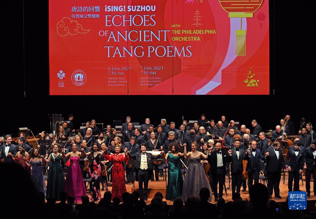 “唐詩(shī)的回響”新春音樂(lè )會(huì )7日晚在美國紐約林肯中心舉行。中國常駐聯(lián)合國代表張軍、第77屆聯(lián)大主席克勒希、中國駐紐約總領(lǐng)事黃屏、聯(lián)合國高級官員、近40個(gè)國家常駐聯(lián)合國使節以及紐約各界人士約700人觀(guān)看了演出。新華社記者 李睿 攝