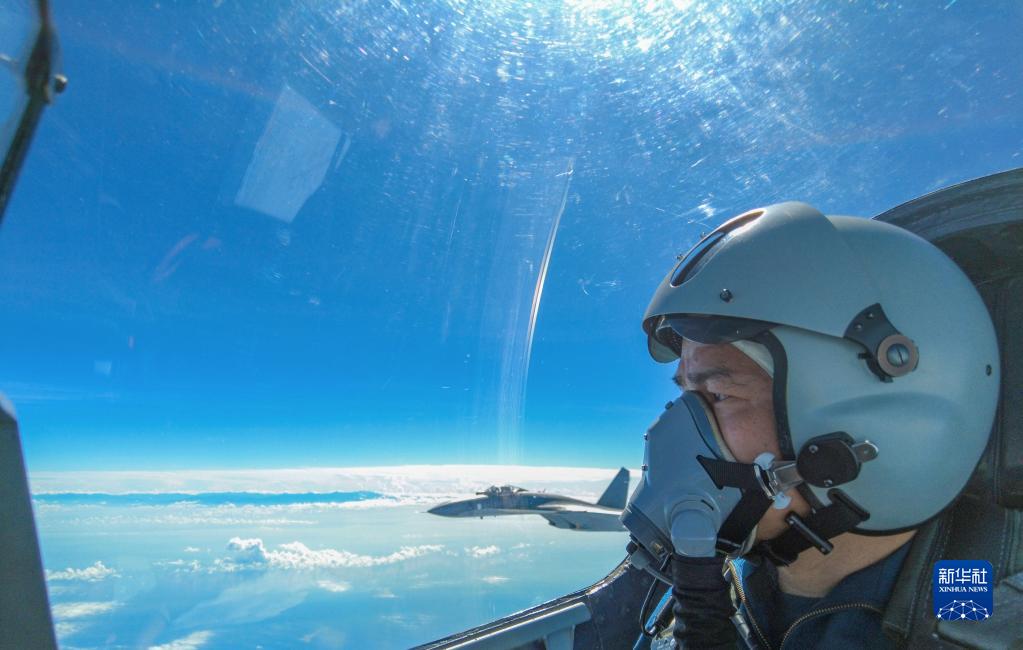 2022年8月7日,中國人民解放軍東部戰區按計劃,繼續在臺島周邊??沼蜻M(jìn)行實(shí)戰化聯(lián)合演訓。這是戰機正在進(jìn)行編隊飛行。