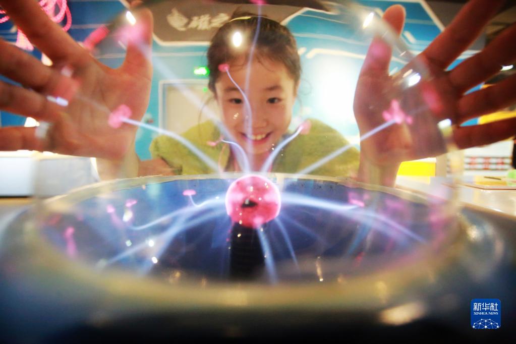2022年10月1日,在江蘇揚州科技館,小朋友在體驗“輝光球”。當日是國慶假期第一天,人們以多種方式迎接長(cháng)假,歡度佳節。