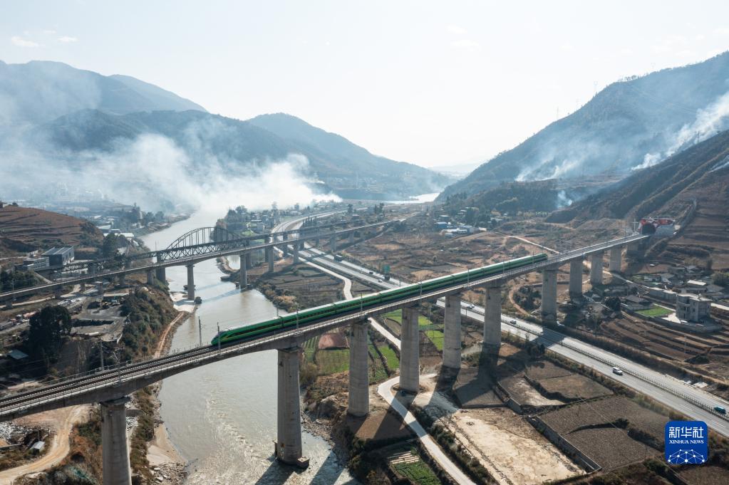 2022年12月26日,C45次列車(chē)行駛在新成昆鐵路上(無(wú)人機照片)。