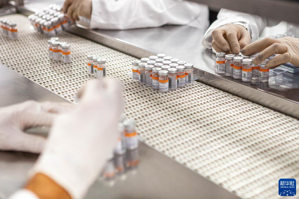 2022年8月31日,工作人員在巴西圣保羅州布坦坦研究所的克爾來(lái)福新冠疫苗生產(chǎn)線(xiàn)上工作。自2020年6月以來(lái),巴西布坦坦研究所與中國科興公司開(kāi)展了包括新冠疫苗Ⅲ期臨床試驗在內的多項臨床研究。