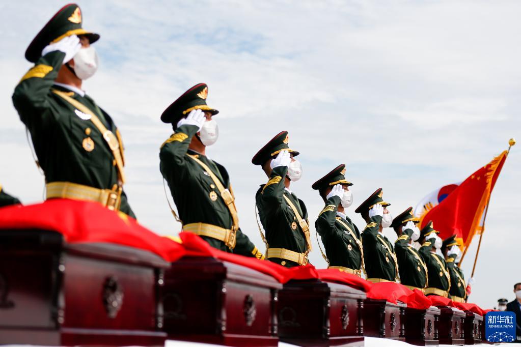 2022年9月16日,中國人民解放軍禮兵在韓國仁川國際機場(chǎng)準備護送烈士棺槨登上解放軍空軍專(zhuān)機。當日上午,中國和韓國在仁川國際機場(chǎng)舉行第九批在韓中國人民志愿軍烈士遺骸交接儀式,確認交接88位志愿軍烈士遺骸及相關(guān)遺物。