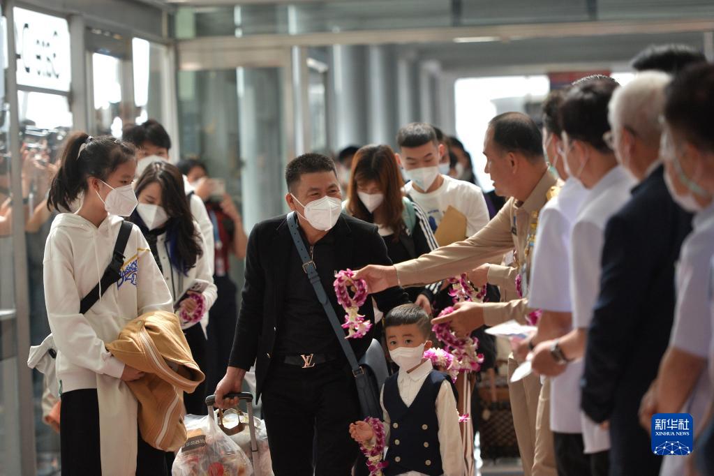 當日,泰國素萬(wàn)那普機場(chǎng)舉行儀式歡迎中國出入境政策調整后首個(gè)中國赴泰國航班旅客,泰國副總理兼衛生部長(cháng)阿努廷到現場(chǎng)迎接。該航班來(lái)自廈門(mén),共搭載269名旅客。新華社發(fā)(拉亨攝)
