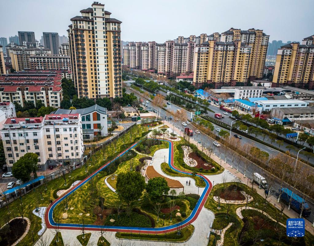 1月10日拍攝的合肥市瑤海區的一處新建街頭游園(無(wú)人機照片)。