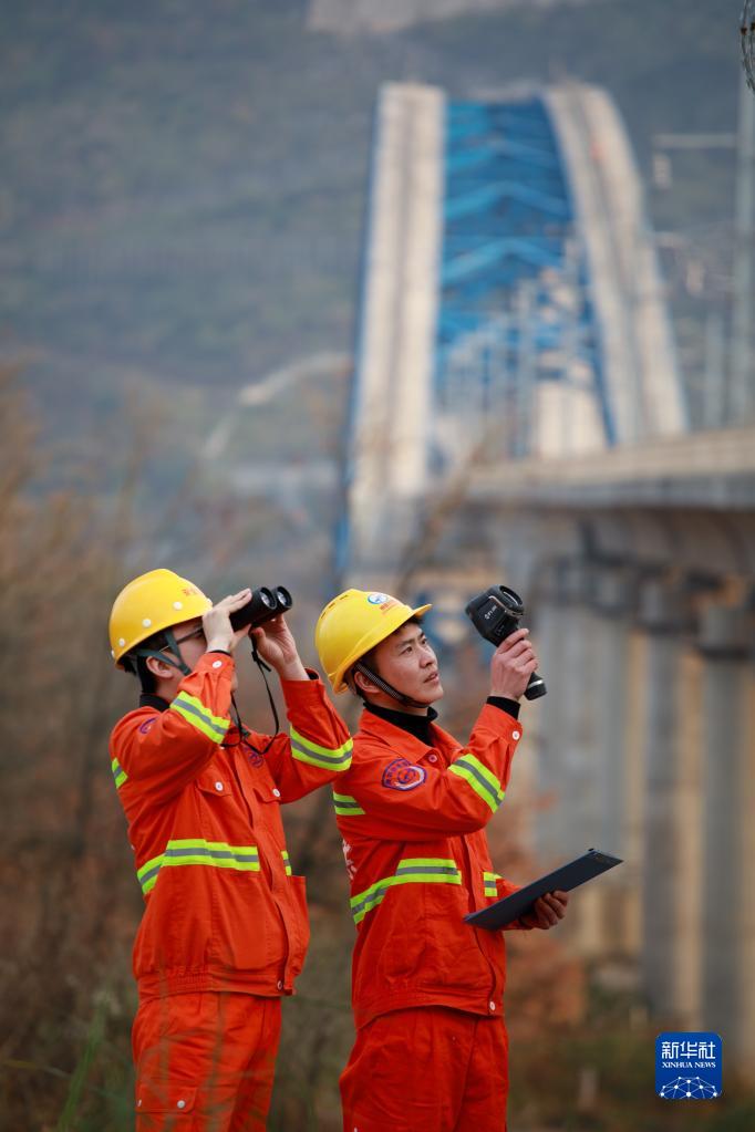 1月10日,貴陽(yáng)供電段工作人員對大橋上的供電設備進(jìn)行檢查。