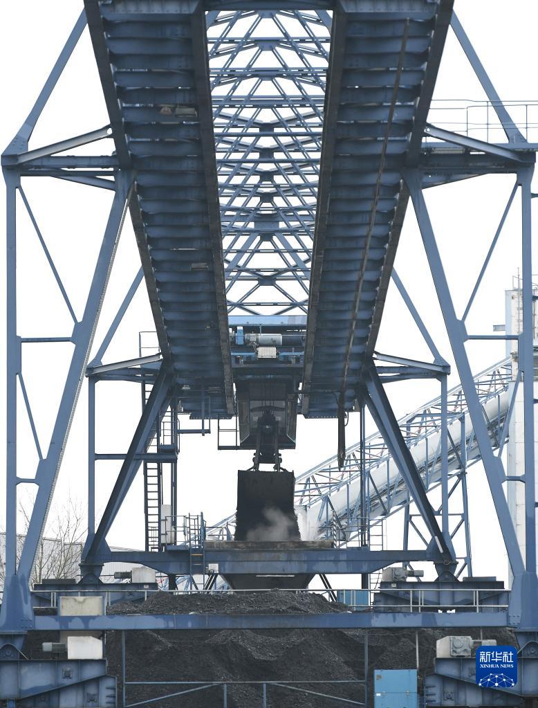 1月9日,德國柏林一家熱電廠(chǎng)的機械設備在煤炭堆場(chǎng)作業(yè)。