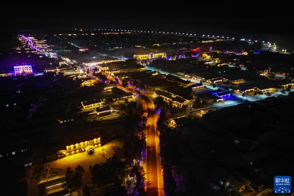 這是1月7日拍攝的漠河市北極村夜景(無(wú)人機照片)。新華社記者 張濤 攝
