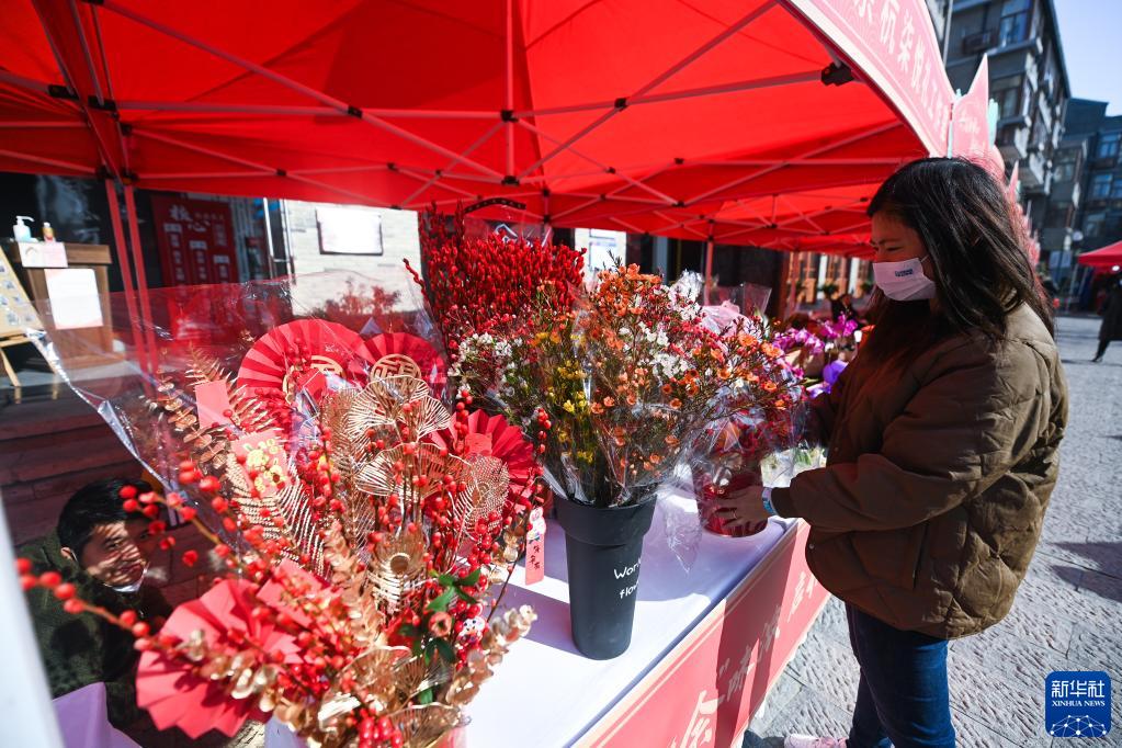 當日,“共富新中心,亭市卯好年”老街年貨節在浙江省杭州市余杭區瓶窯鎮瓶窯老街拉開(kāi)序幕,這也開(kāi)啟了余杭區鄉村迎春系列年貨節。年貨節上,既有春筍、腌火腿等特色農產(chǎn)品銷(xiāo)售,也有展示當地文化的文創(chuàng )市集,還有寫(xiě)春聯(lián)、送祝?;顒?dòng),營(yíng)造喜慶祥和的過(guò)年氛圍。