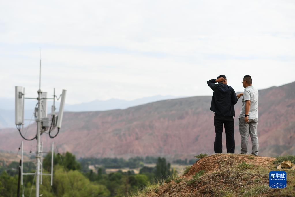 青海聯(lián)通工作人員為孫海云(左)介紹新安裝的千兆光網(wǎng)設備(2021年7月15日攝)。