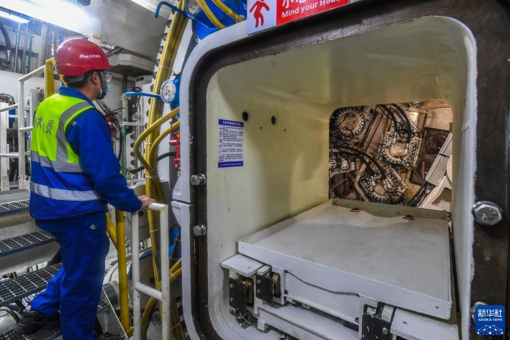 1月11日,技術(shù)人員在“大道先鋒號”盾構機始發(fā)前檢查刀頭狀態(tài)。
