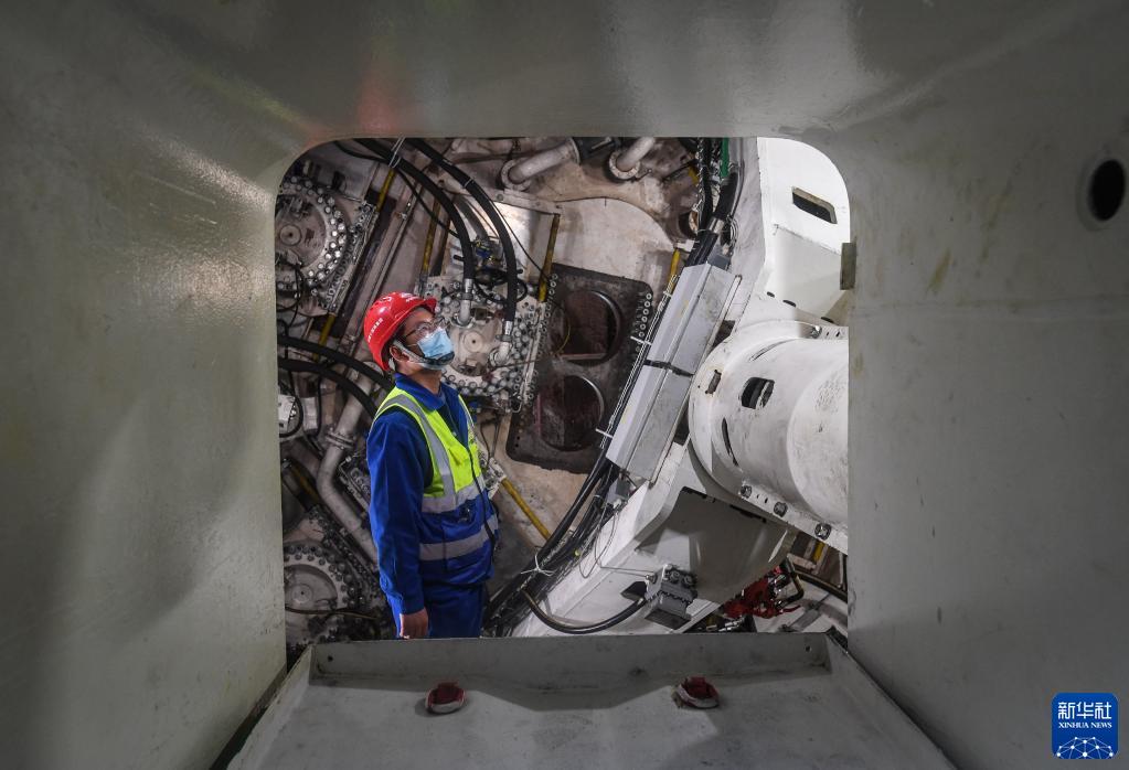 1月11日,技術(shù)人員在“大道先鋒號”盾構機始發(fā)前檢查刀頭狀態(tài)。