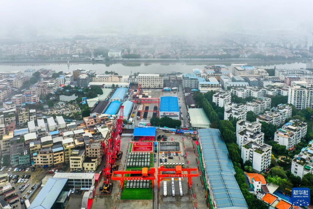 “大道先鋒號”盾構機在廣州海珠灣隧道工程西線(xiàn)隧道始發(fā)(無(wú)人機照片,1月11日攝)。