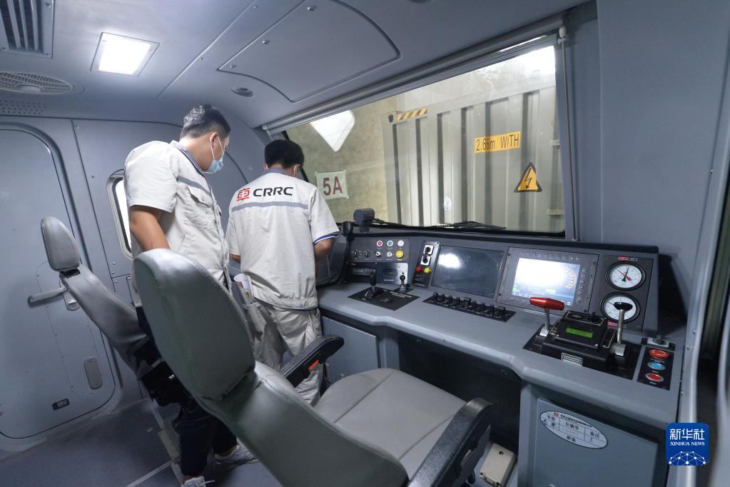 這是1月11日在泰國曼谷拍攝的中國中車(chē)大連公司生產(chǎn)的電池動(dòng)力機車(chē)駕駛室內景。