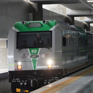 泰國國家鐵路局11日舉行中國中車(chē)大連公司為泰國“量身定制”的電池動(dòng)力機車(chē)的測試,標志著(zhù)該機車(chē)正式發(fā)布,將于近期投入使用。新華社發(fā)(拉亨攝)